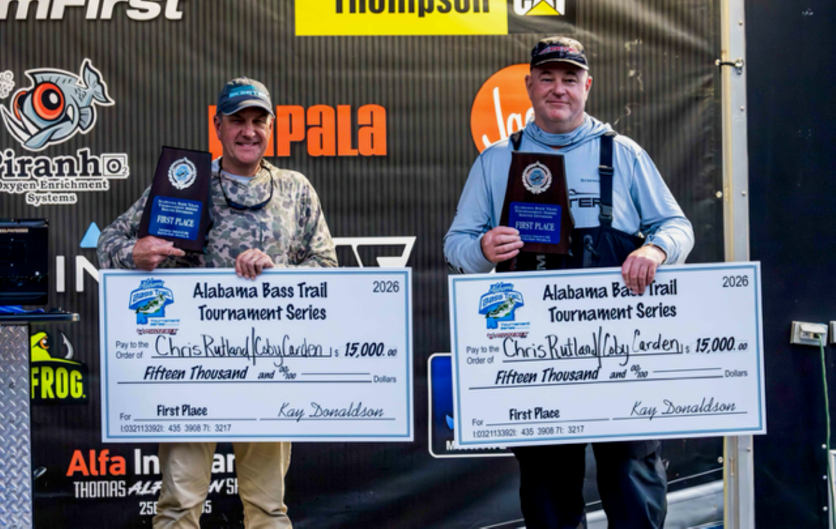 Rutland and Carden have fished every single season of the Alabama Bass Trail since its inception. With this win, they now own seven career ABT victories, the most in Trail history, along with two Anglers of the Year titles and a record of never finishing lower than 14th in the AOY standings. They have wins on nearly every South Division lake and now, finally, a Lake Jordan trophy.