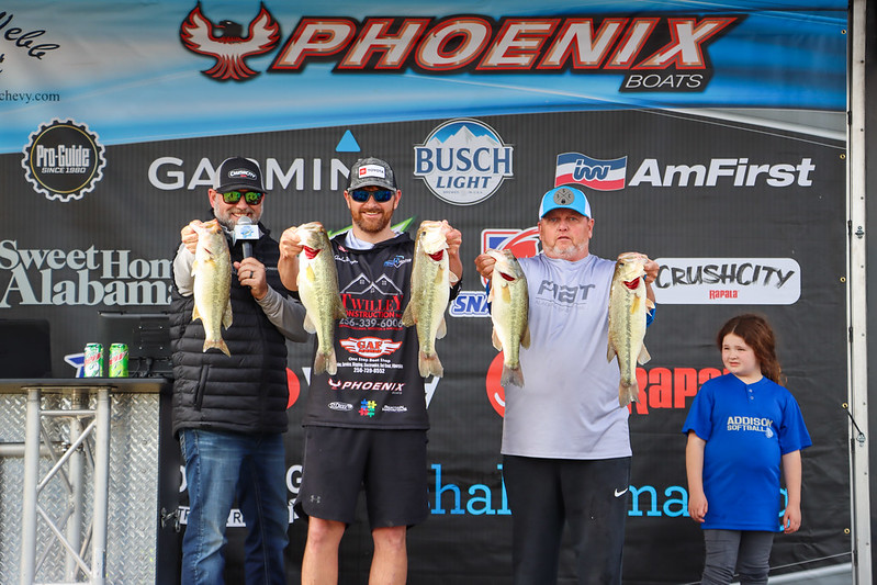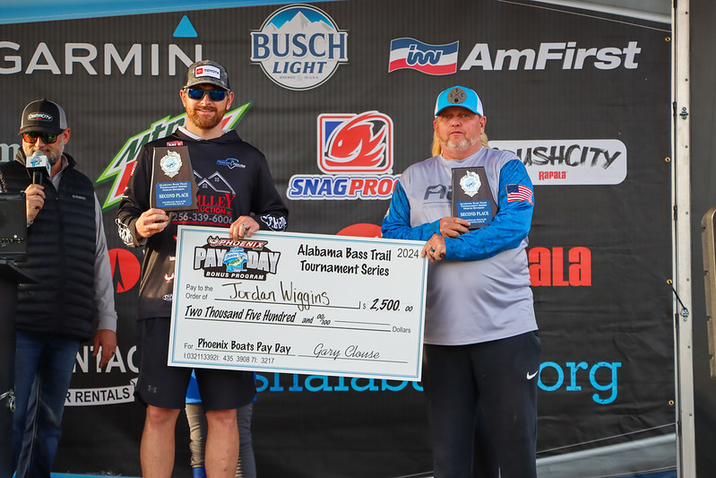 Steve Jacques and Jordan Wiggins are experienced fishermen who have been fishing on the lake for a long time. Jordan, who grew up fishing here, has always done well. The duo caught 20.03 pounds of fish, which would usually be enough to win. However, when the scales closed, they found themselves in second place, with only one team ahead of them. They received a check for $7500 as a result and a extra $2,500 Phoenix Pay Day Bonus. During practice, they realized that the lake was fishing tough. As a result, they made some adjustments and went shallow, exploring areas with 2 feet or less of water. Last week, they were fishing in about 4 feet of water, but the rain caused them to move even shallower. They know that the fish are ready to spawn at any time now. They used a chatterbait, a buzzbait, and a worm to catch fish. They also realized that they had to slow down a little and use the worm more. Steve caught the three biggest fish they weighed in on a worm. According to Steve, “Any day you catch 20 pounds of fish at Smith Lake is a good day.”
