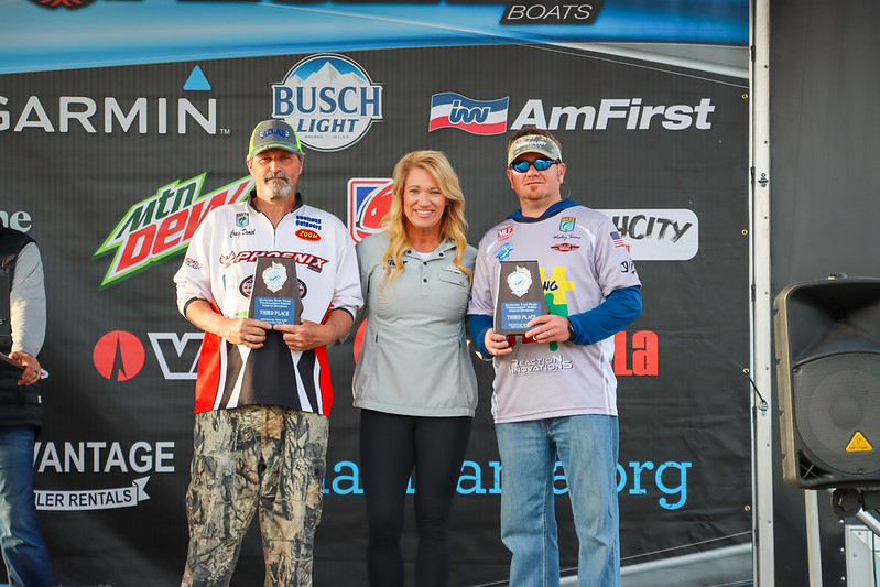 Wesley Sams and Craig Daniel caught 18.10 pounds of fish during their fishing trip. They started the morning by fishing in a spot where they had previously found some bedding fish. Wesley mentioned that Craig is known as the best largemouth bed fisherman on Smith Lake. He also said that when you are fishing behind someone like Craig, it’s important to have the net ready and to pitch around while hoping for some luck. The two of them got off to a great start that morning, which Wesley admitted was not normal. Craig then shared that on their third cast, he used a white fluke and twitched it a few times, when a 2.70-pound spot blew up on it. He finally got the hook set and the fish in the boat. Wesley was fishing behind him and also got a bite. He caught a 4.70-pound fish followed by a 3.70-pound fish. They caught fish everywhere they went all day long, but they couldn’t find the large mouth they were looking for. Their efforts earned them a $6,000 payday for finishing in third place.