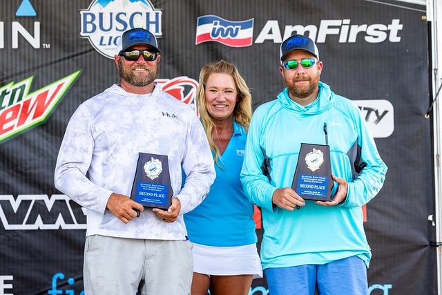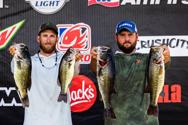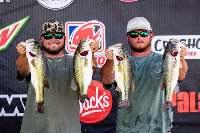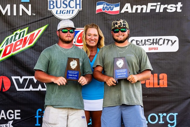 The third-place team was Noah and Cole Godwin. These two brothers are one of the most successful teams on the ABT. In recent years, they won two events in the same year. They have had many top 5. In each event, they are a team to watch and expect to do well.  In this event, they caught 20.62 pounds and collected a $6,000 payday. In practice, they “did a lot of idling around looking for schools of fish. We located about 11 schools, and we were able to get on the third one today that we tried stopping on. We didn’t catch anything there, so we made a move to our fourth spot. There we caught about 14 pounds in the first 10 minutes and continued to upgrade till about 11 o’clock. We never had a big bite but just solid fish.” They describe this spot as “a little hump that falls off to the creek channel. We found it yesterday and fished it a little bit, caught two quickly, and left. We were surprised to see that nobody else found the spot. The key baits were crankbaits and worms. We spent as much time here as we could to find fish. We were boat 74, so we knew we needed something off the beaten path to be successful and we found that.” This finish placed them in 3rd place in the AOY Standings and qualified them to the BASS Team Championship and the ABT Championship.