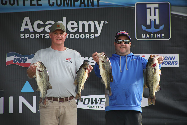 By the time the weigh-in process was over, the team of Lanier Burton and Kelley Jaye came out on top with 19.38 lbs. Their initial plan was to throw a jerkbait and attempt to catch a limit of spotted bass early. Before the team took off from Beeswax Landing to start their day, Lanier said “we were worried about the color of the water, worried about it being too dirty”. They decided to change the gameplan once the jerkbait pattern did not materialize. Kelley stated “We wanted to start with a limit of spots early and then cull up by ounces during the day targeting shallower water. When that did not work out, we went to topwater, frogs, and swim jigs. We went through an arsenal before finally narrowing it down to the green pumpkin ½ oz. Strike King Denny Brauer Casting Structure jig tipped with a green pumpkin Berkley PowerBait MaxScent Power Chunk”. They targeted vegetation near deeper water and started getting quality bites on the jig and decided to stick with it the rest of the day. As it turned out, they did not need the limit of spotted bass to start the day and were able to catch enough of the right fish on the jig to capture the win.
