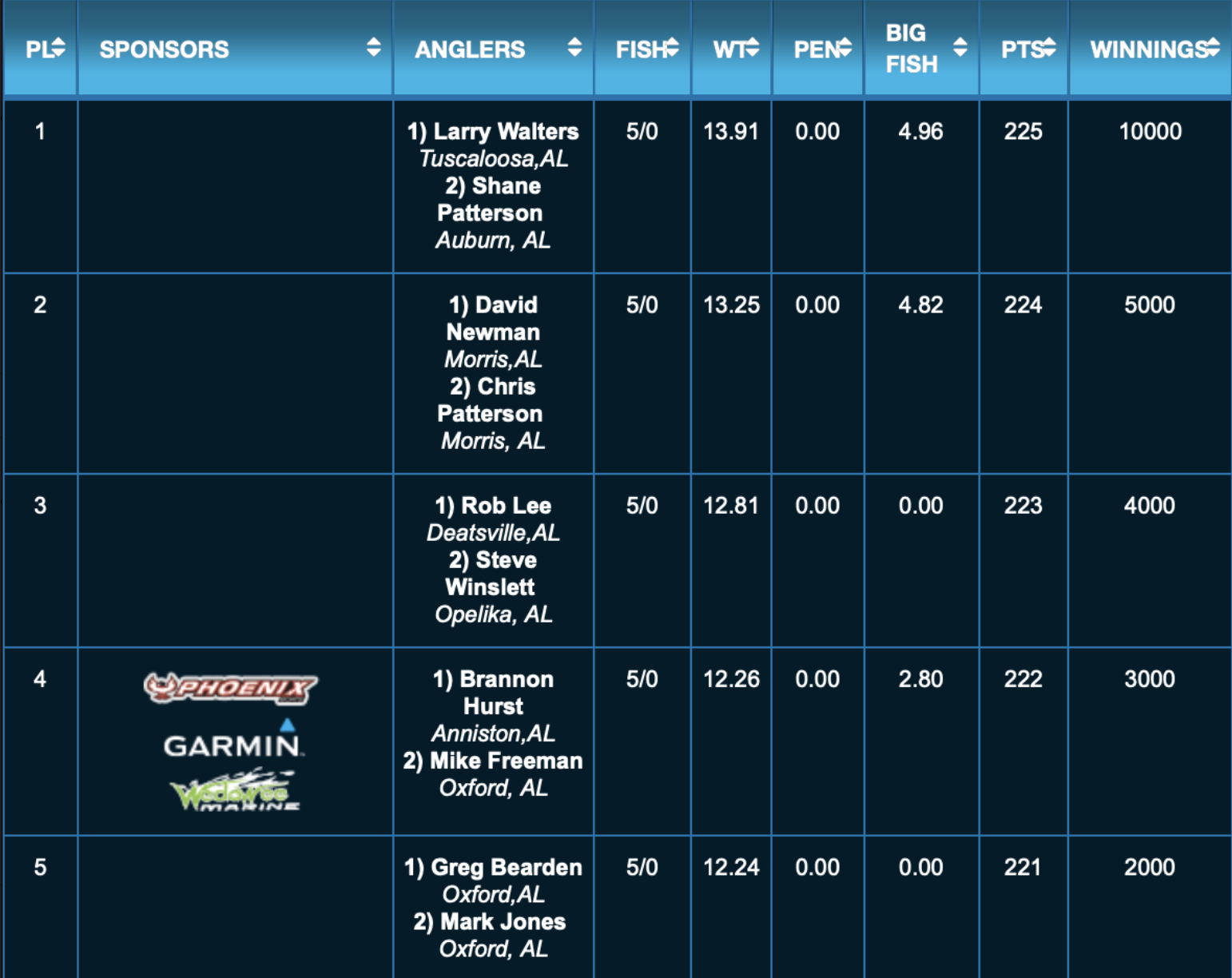 Top five standings are below. For a complete list see https://dev-alabama-bass-trail.pantheon.io/tournament-series/lm-results/