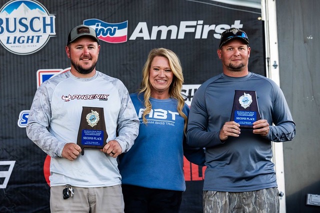 The third-place team of Walker Brown and Sloan Pennington shared that practice for them “was not good.” Walker shared, “I grew up here and now live in North Alabama, but I still consider Lay Lake as my home lake. I thought the two days we spent practicing were going to be better. We practiced all the stuff we used to catch them on and both days we ended up not catching them. Normally this time of year, I would expect to throw a spook all day and you can catch 18 pounds plus a day.” The team shared, “On tournament day we abandoned the practice plan and just went fishing today. On day one, we didn’t fish a single thing we fished in practice and on day two, we didn’t fish a single thing from day one. We caught everything we weighed in on a Green Pumpkin on a Davis shaky head and flipped the grass with a Green Pumpkin NetBait B-Bug on a 1oz weight. Yesterday we lost a couple of fish that should have had us close to 18-pounds. We lost a 4-pounder at the boat and a 3.5 right at the net. Going out today, we were excited and planned on flipping all day long. We didn’t catch anything early so the fog delay didn’t hurt us. We felt we were in a position that if we did catch two of those that we lost yesterday, we would be in a good place and knocking on the door to win. Today we ended up catching only one of those but at the end of the day in the last 15 minutes, we culled with a 3-pound spot and another 2.5 spot.” Their total weight for two days was 30.21 pounds. With their third-place finish, they collected a $5,000 payday.