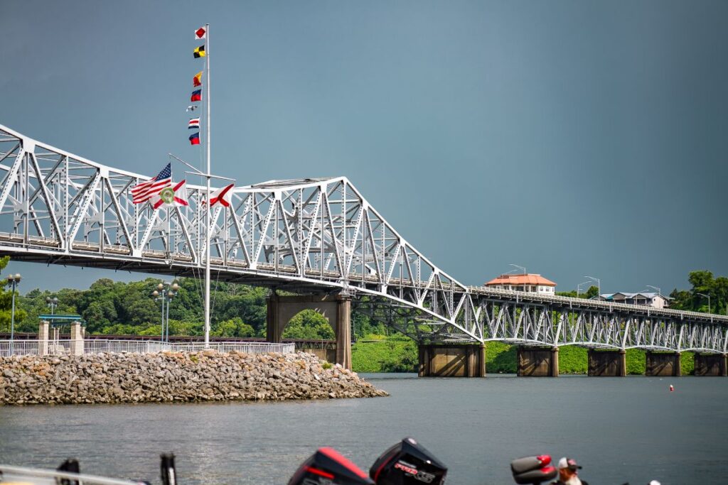 The Alabama Bass Trail North Division Pickwick Lake tournament will launch from McFarland Park, located at 200 James M. Spain Drive in Florence, Alabama. Anglers should be aware that road closures related to the Mitchell Boulevard Bridge replacement may impact travel routes, and are encouraged to check for updates from ALDOT prior to arrival.