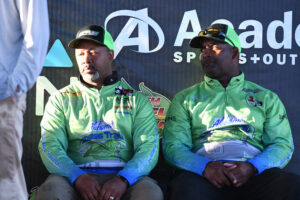 After two days of official practice, teams were ready to get to work on day one of the event on Friday. Anglers found the lake conditions to be abnormal for this time of year. Typically, in late October, the water temps have really cooled off which normally pushes fish to the shallows chasing bait. The fall pattern at Smith Lake is also known for schooling spotted bass that can be found in a blueback herring feeding frenzy. Smith Lake is much different than other lakes on the ABT with most of the lake being very clear and very deep. Anglers often break the lake down into three sections: Ryan Creek, Rock Creek, and the Sipsey Creek. Teams can spend the whole day just fishing one of these areas and often have little or no fishing pressure around them providing teams the opportunity to fish their strengths. Smith Lake does have a slot limit that requires all bass between 13-15 inches to be released. Teams have to learn to navigate the slot limit and do their best to catch as many as they can over the slot limit to really have a solid weight.